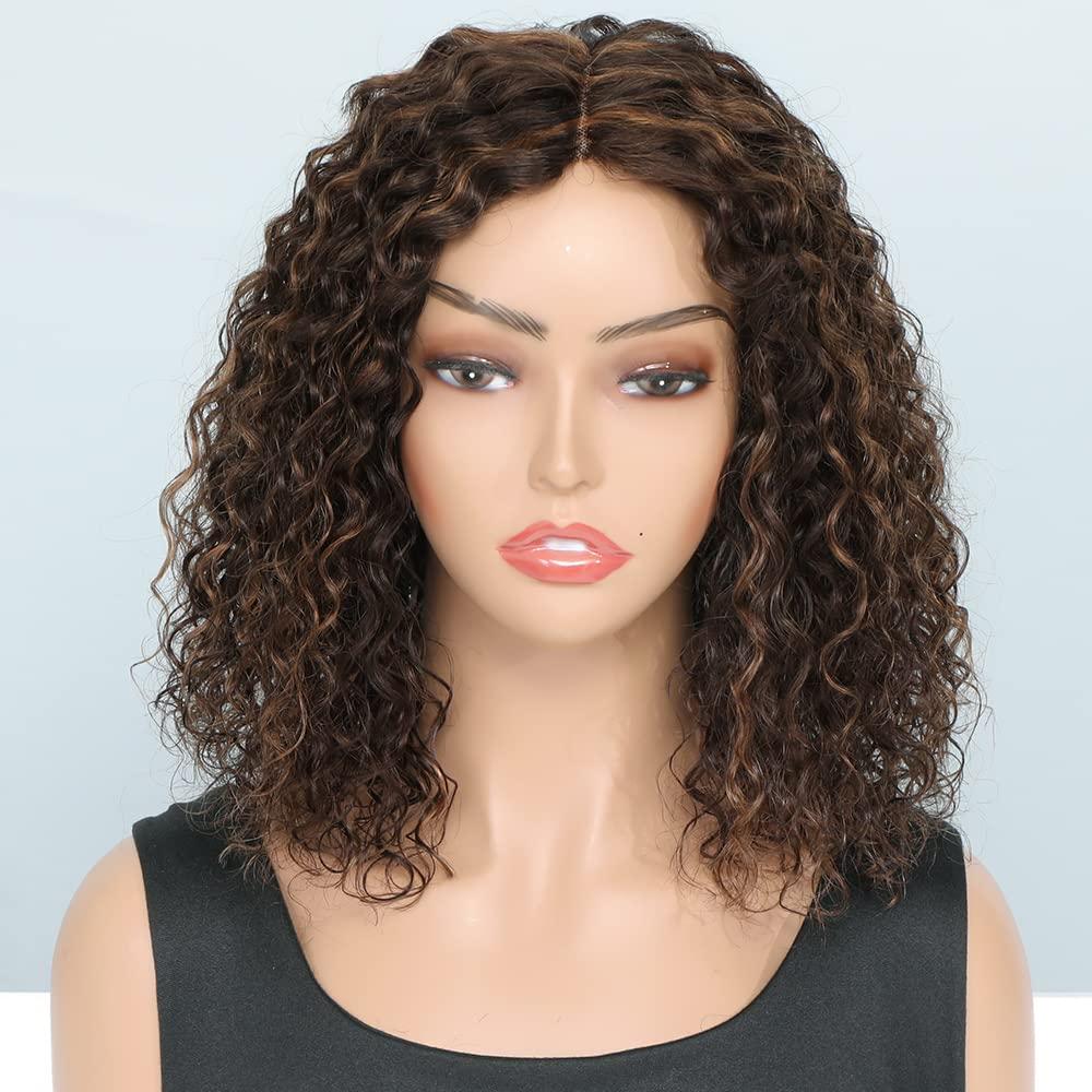 Fine Plus Highlight Curly Human Hair Wigs For Women 150 Density Curly Bob Wigs For Black Women Human Hair 4 30 Glueless Wigs With Middle Part Lace 100 Real Human Hair 12 Inch
